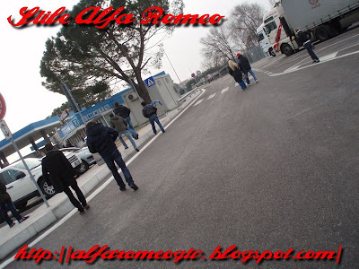 La direzione è l'uscita Latisana, per percorrere un pezzetto di strada indietro ed arrivare sulla SS Triestina,che passa davanti l'incrocio che porta a Pocenia:il parcheggio del ristorante-pizzeria "da Michele" è la nostra meta per caricar a bordo i nostri confratelli della sezione UD/PN, capitanati dal prode alfiere del Marchio Alfa147GT/Maurizio, duro dal freddo come un caramello!!