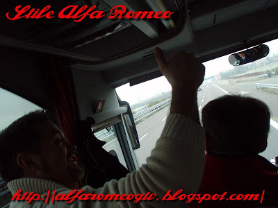 Molti fra noi sono amici, alcuni "solo" conoscenti con cui si è famigliarizzat durante le 5 ore di pullman ma l'intesa,l'emozione e quel nodo alla gola lo abbiamo ancora tutti quando Mario ci chiama a sè per iniziare questa fantastica "full immersion" tutta targata e griffata Alfa Romeo...
