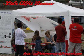 Il gazebo è stato ufficialmente inaugurato con un bel nastro tricolore,d'altronde Alfa Romeo è un Marchio Italiano,il fiore all'occhiello per molti decenni della produzione automobilistica del Bel Paese ed i recenti dati di vendita sembrano proprio volerlo ricollocare a quel ruolo,unico fra tutti i brand tra l'altro in questo duro momento di crisi mondiale...